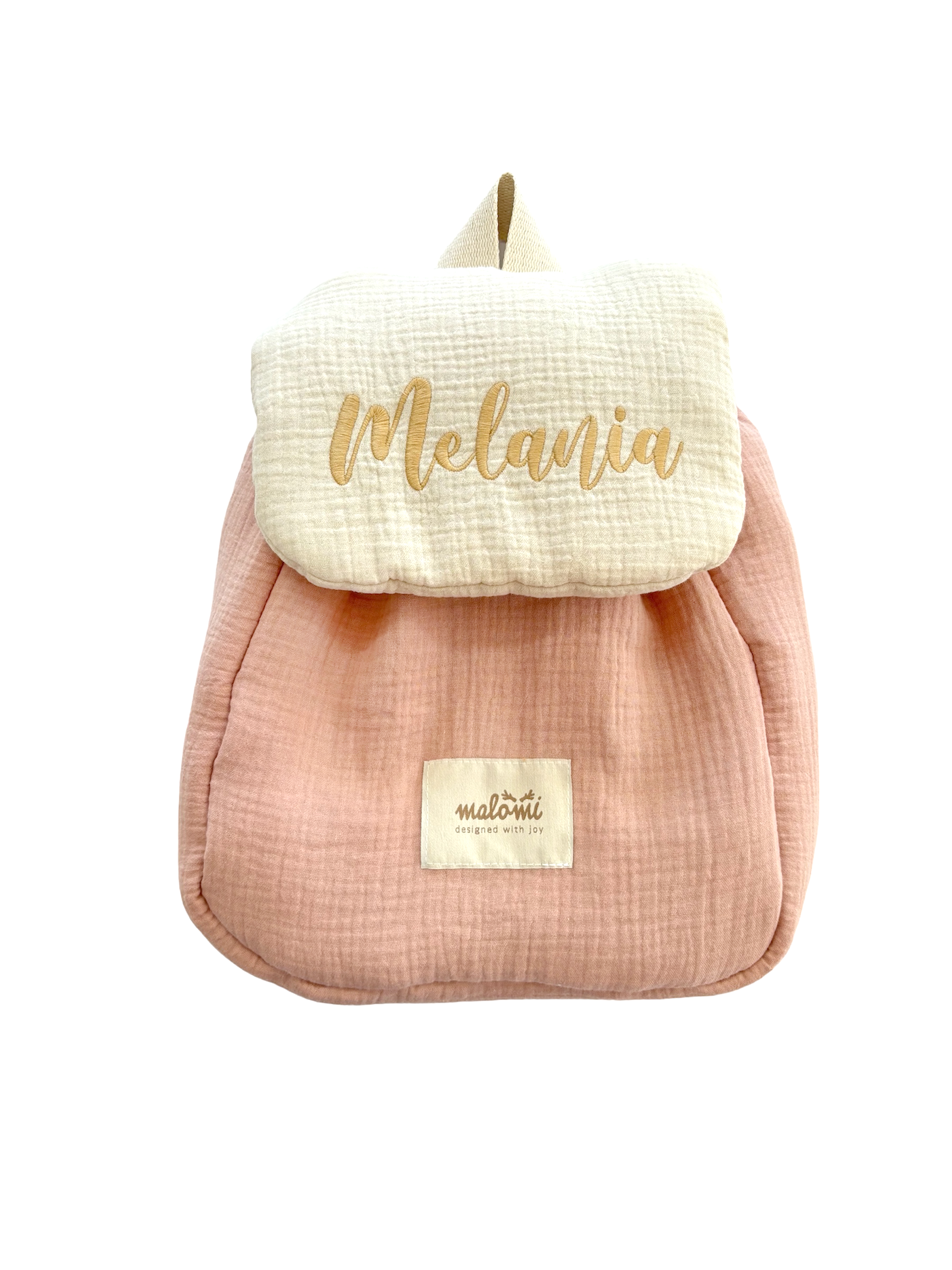 Švelni muslino kuprinė vaikams – minkšta, lengva ir reguliuojama. Tobula pirmiesiems nuotykiams darželyje, kelionėms ar pasivaikščiojimams.