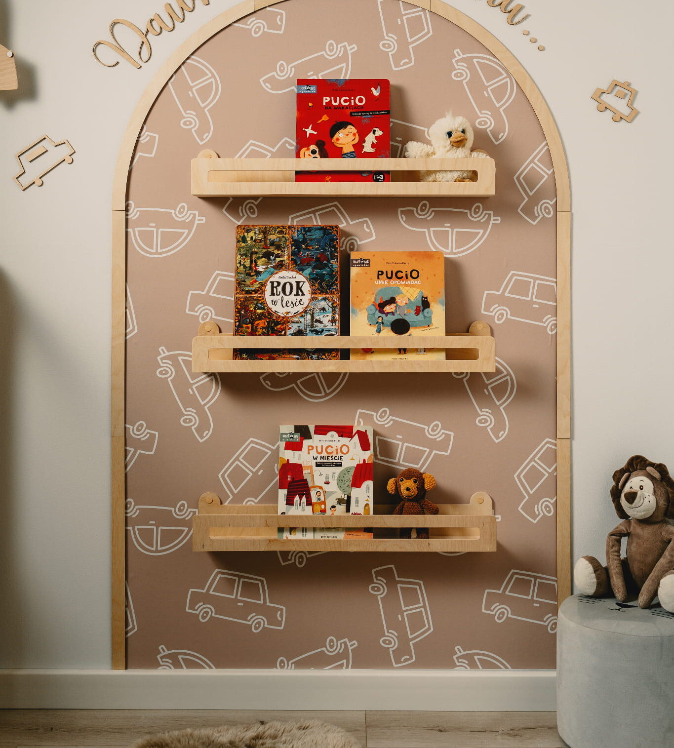 Kai kurios vaikų kambario detalės ne tik puošia, bet ir kuria vaikystės atmosferą. Mūsų sieninė lentynėlė su arka – tai daugiau nei dekoracija. Tai skaitymo kampelis, kuriame gimsta pasakos, smalsumas ir kasdieniai mažieji ritualai.