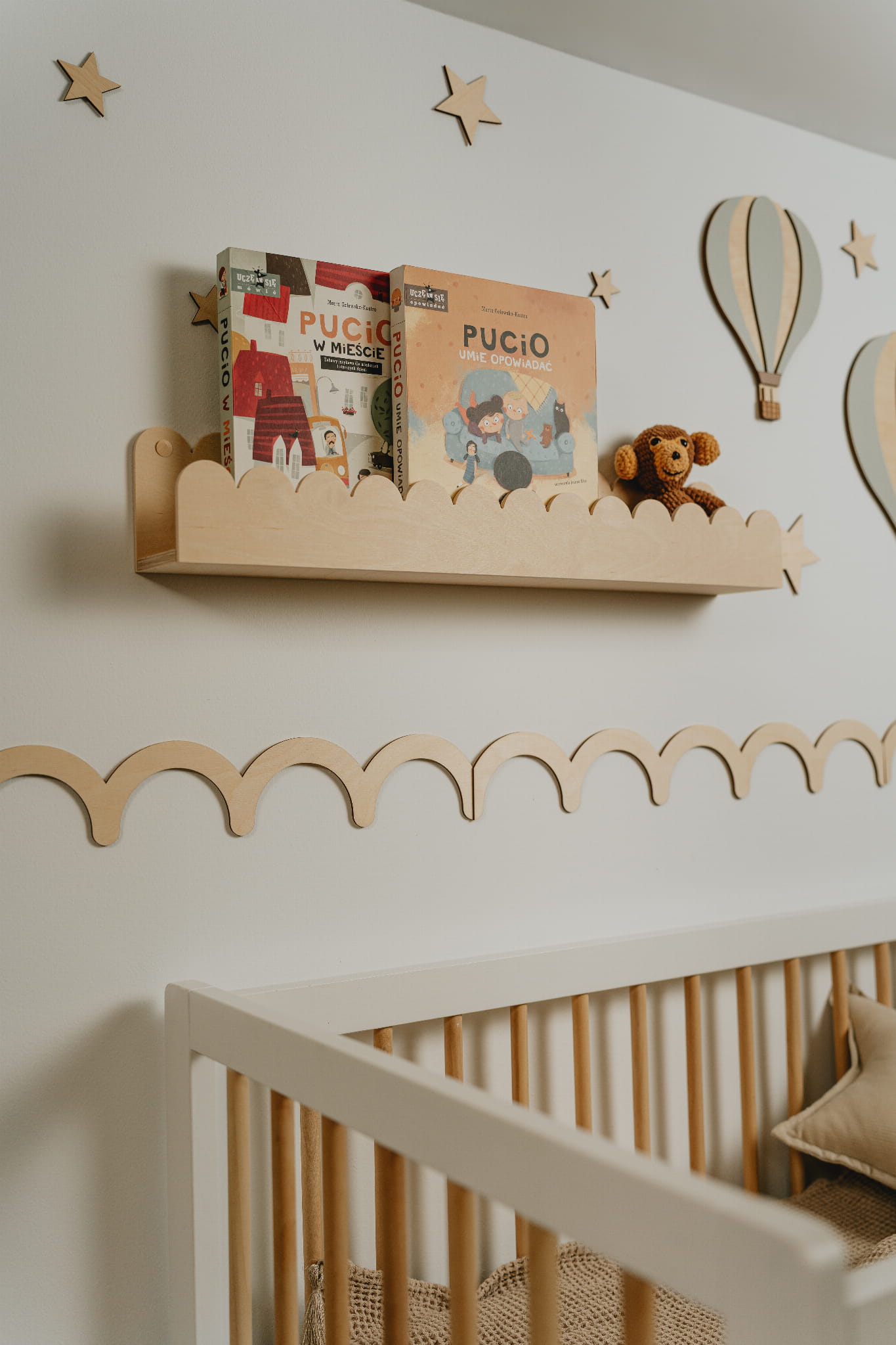 🧸 Medinė lentyna – švelni banga vaiko kambariui