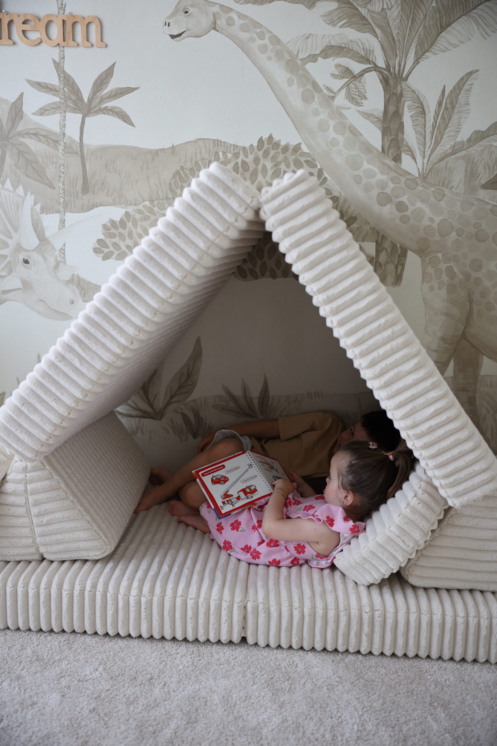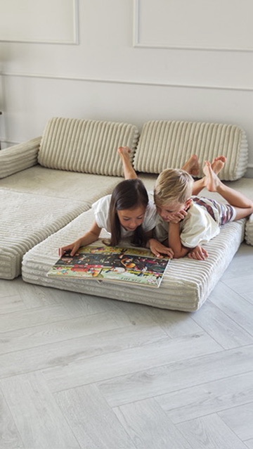 Ši žaidimų sofa – tarsi minkštas debesėlis. „Waffle“ modelis iš ypač švelnaus veliūro ne tik džiugina vaikus žaidimais ir kūryba, bet ir suteikia jaukumo visai šeimai. Tinkama tiek dienos poilsiui, tiek fantazijos kupinoms pramogoms – ir visa tai su stilingu švelnios estetikos akcentu.
