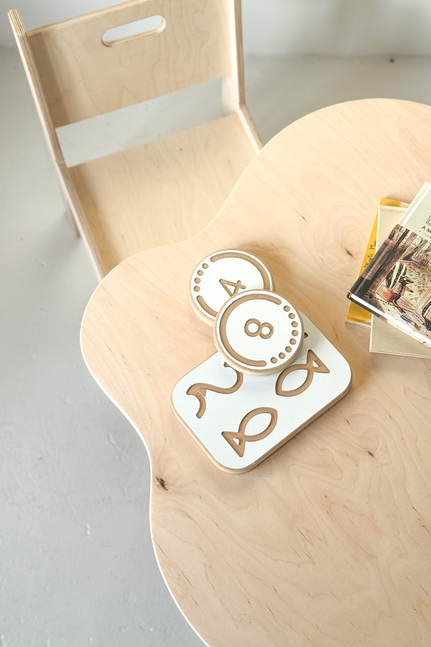 Staliukas pagamintas iš natūralios beržo faneros – patvarios, tvirtos ir vaikams saugios. Visi kraštai kruopščiai nušlifuoti ir užapvalinti. -