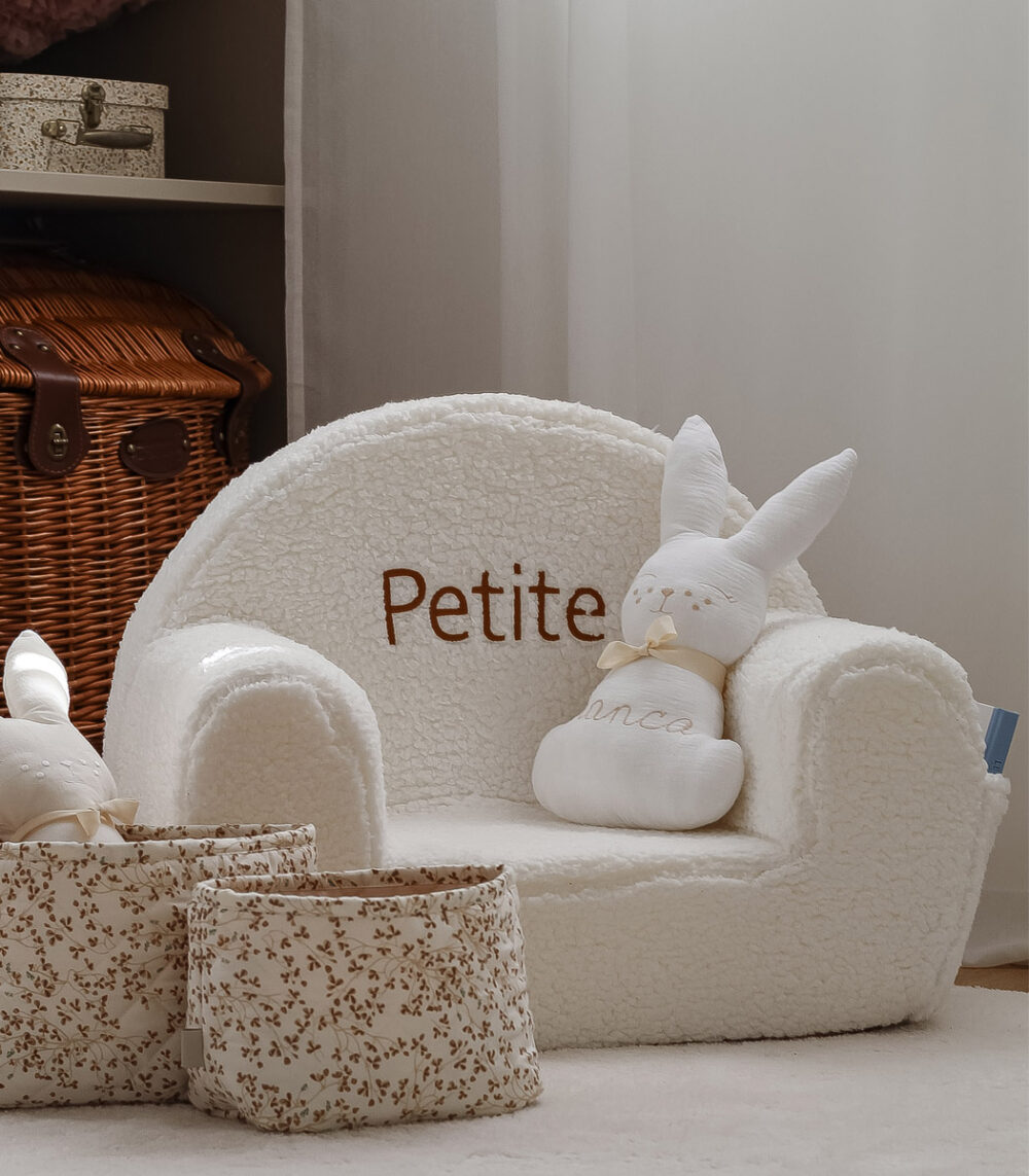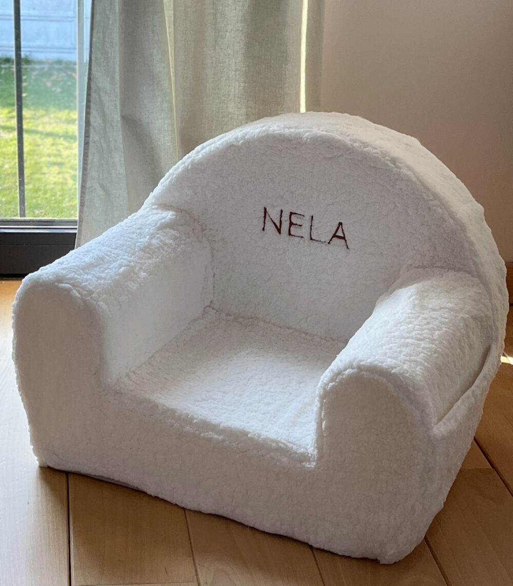 Minkštas, jaukus ir pritaikytas mažiesiems – puikiai tinka nuo 9 mėnesių amžiaus. Pagamintas iš aukštos kokybės putų, su švelniu kailiniu užvalkalu. Šoninė kišenėlė slepia mažus lobius, o ant atlošo išsiuvinėjamas vardas suteikia unikalumo ir žavesio.