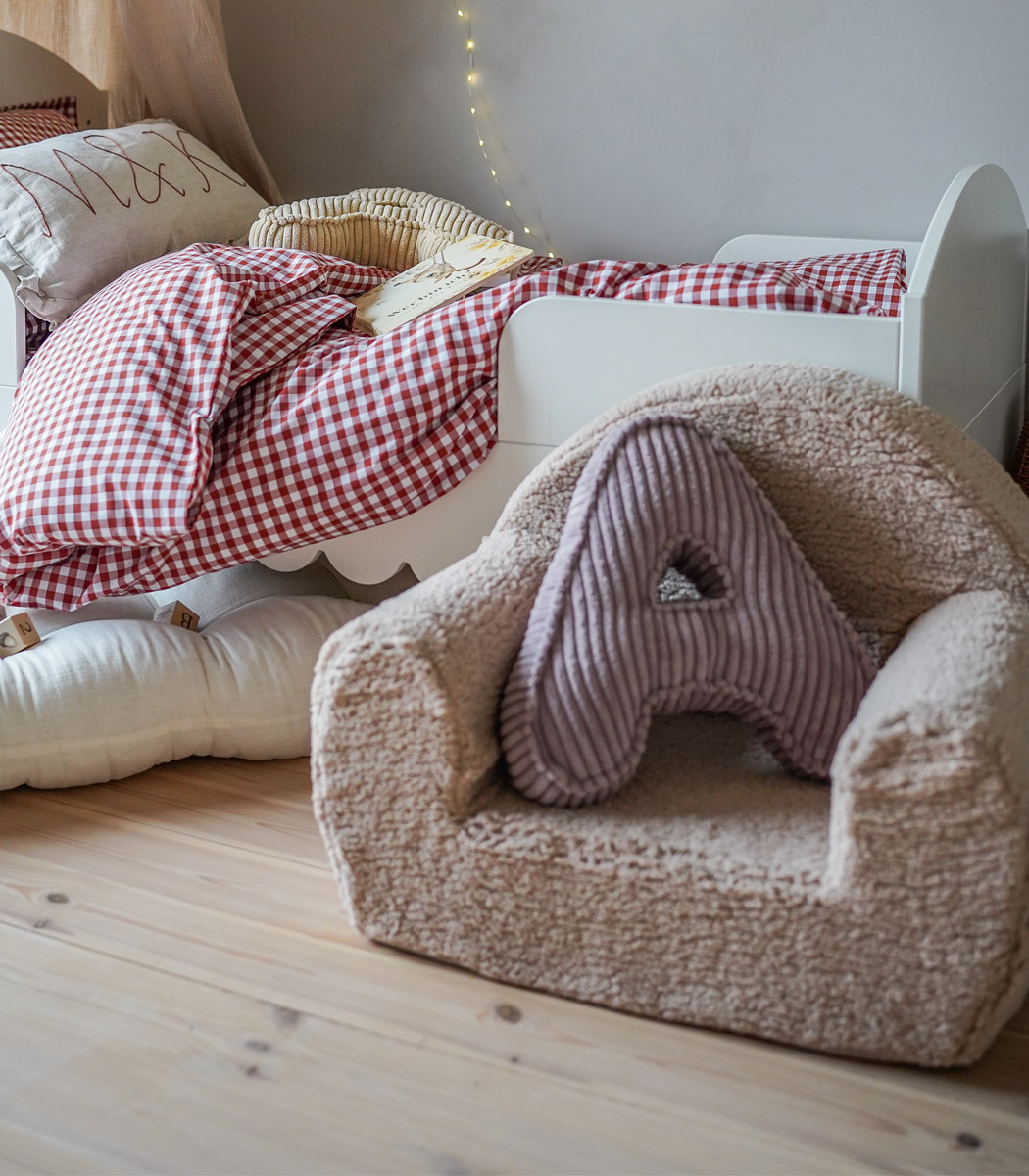 Šis jaukus, švelnus rankų darbo foteliukas skirtas vaikams nuo 9 mėn. Patogus dizainas leidžia atsipalaiduoti, o šoninė kišenėlė paslepia mažus lobius.