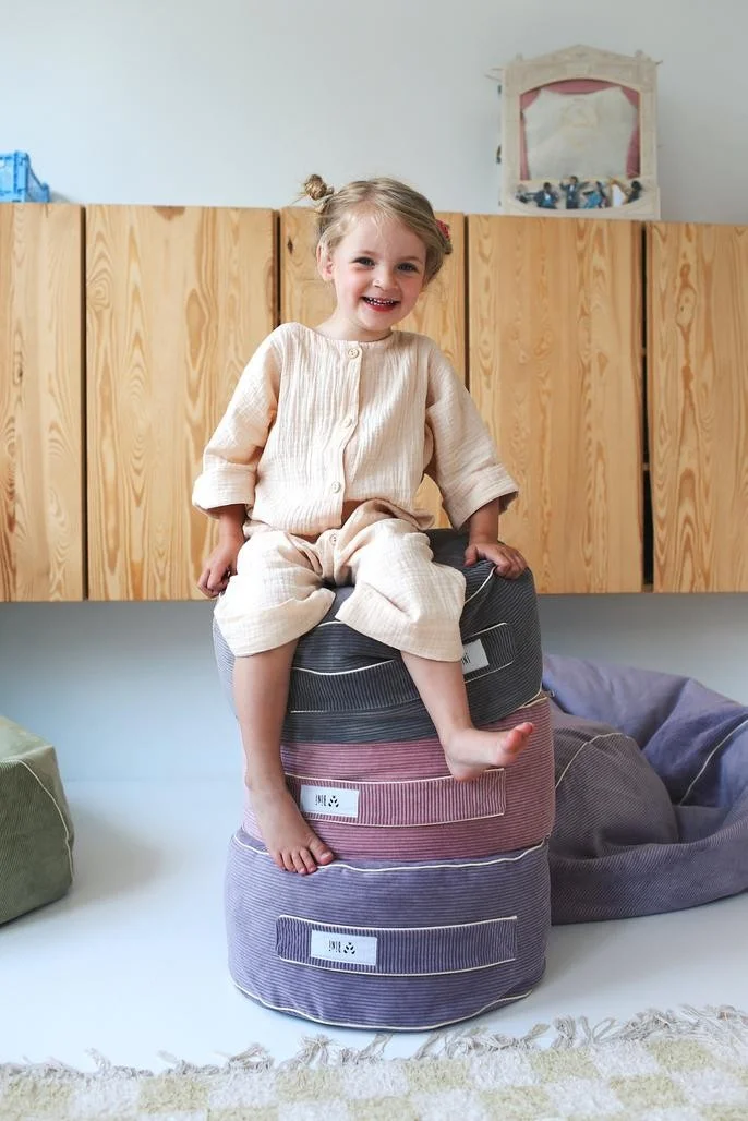 „BiNi“ pufas – tai paskutinis švelnaus kampelio akcentas. Puikiai dera su kitais mūsų siūlomais „BiNi“ sėdmaišiais arba derinamas prie interjero vienas – kviečia tiek vaikus, tiek suaugusiuosius (ir net augintinius!) stabtelėti, atsikvėpti ir tiesiog būti.