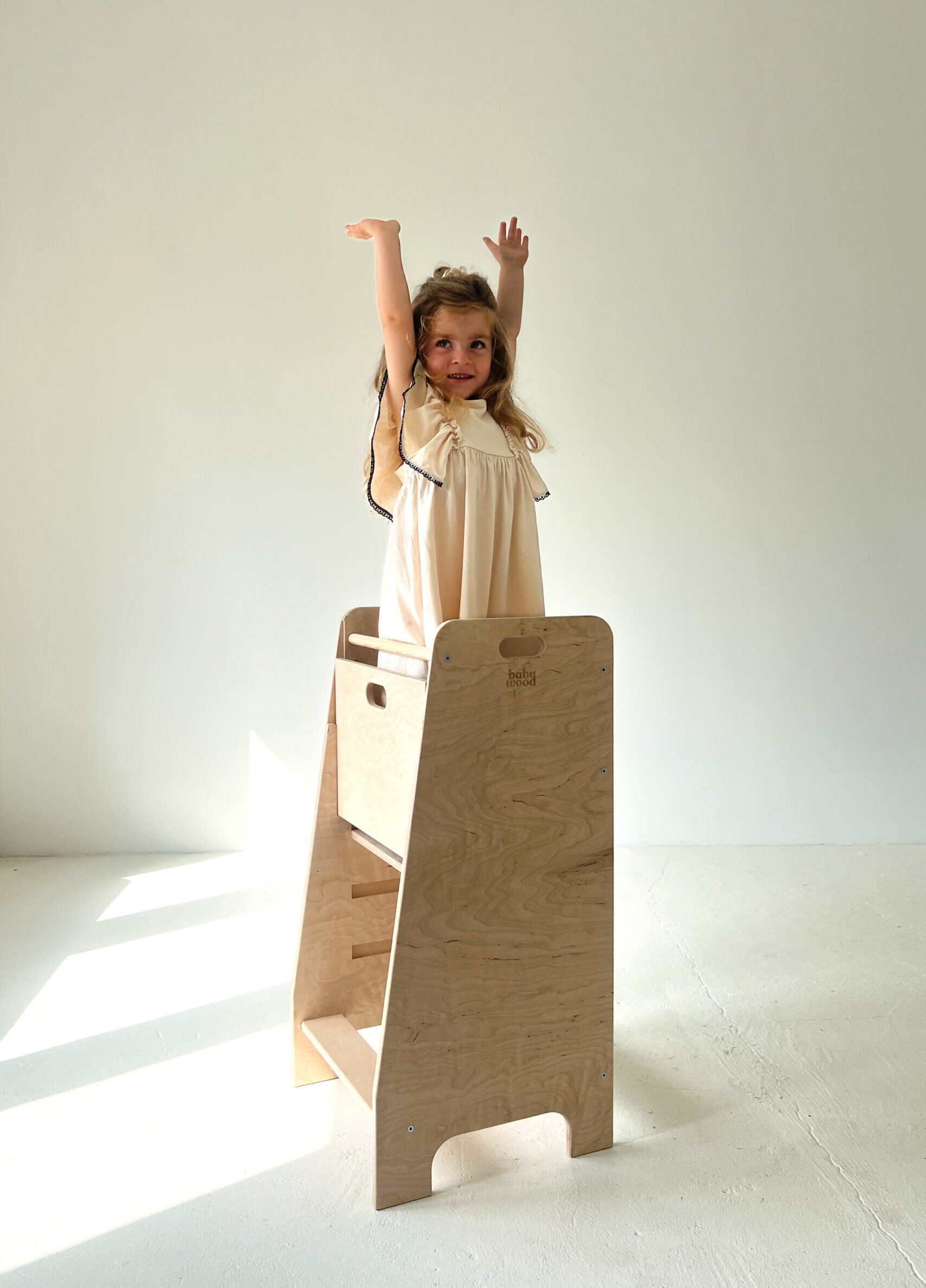 3 pakopų platformos aukščio reguliavimas leis bokšteliui „augti“ kartu su jūsų vaiku. Galėsite greitai ir patogiai pritaikyti jo aukštį pagal mažylio ūgį, kad jis visada būtų tinkamame lygyje padėti jums virtuvėje.