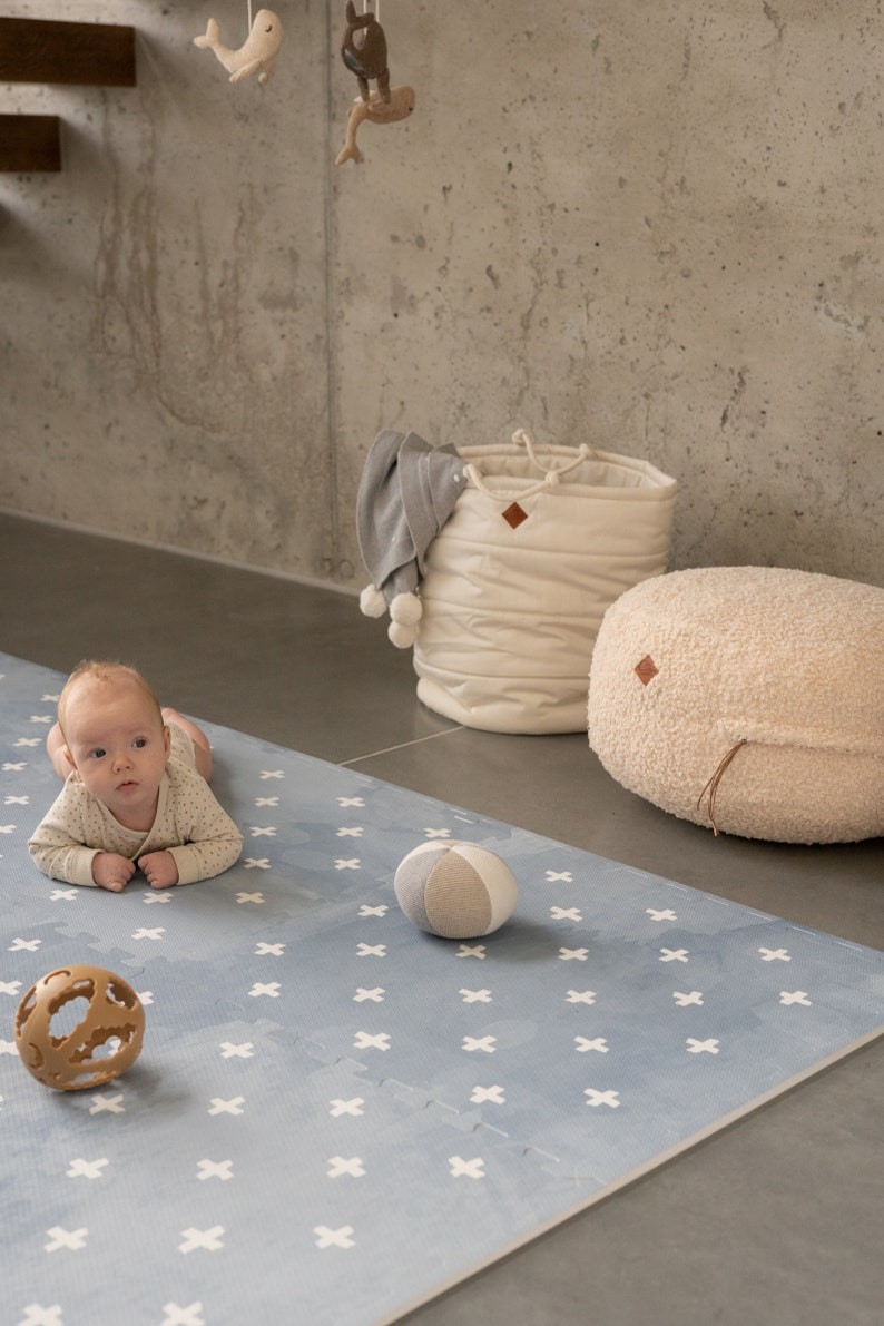 Sukurkite saugią ir jaukią žaidimų erdvę savo mažyliui su OLYA KIDS „Cross“ dėlionių kilimėliu. Pagamintas iš minkštos, netoksiškos EVA putos, šis neutralus, minimalistinio dizaino kilimėlis suteikia šilumos ir stiliaus bet kuriam kambariui. Jis taps patogiu pagrindu žaidimams ir puikiu fonu švelnioms kūdikio nuotraukoms.