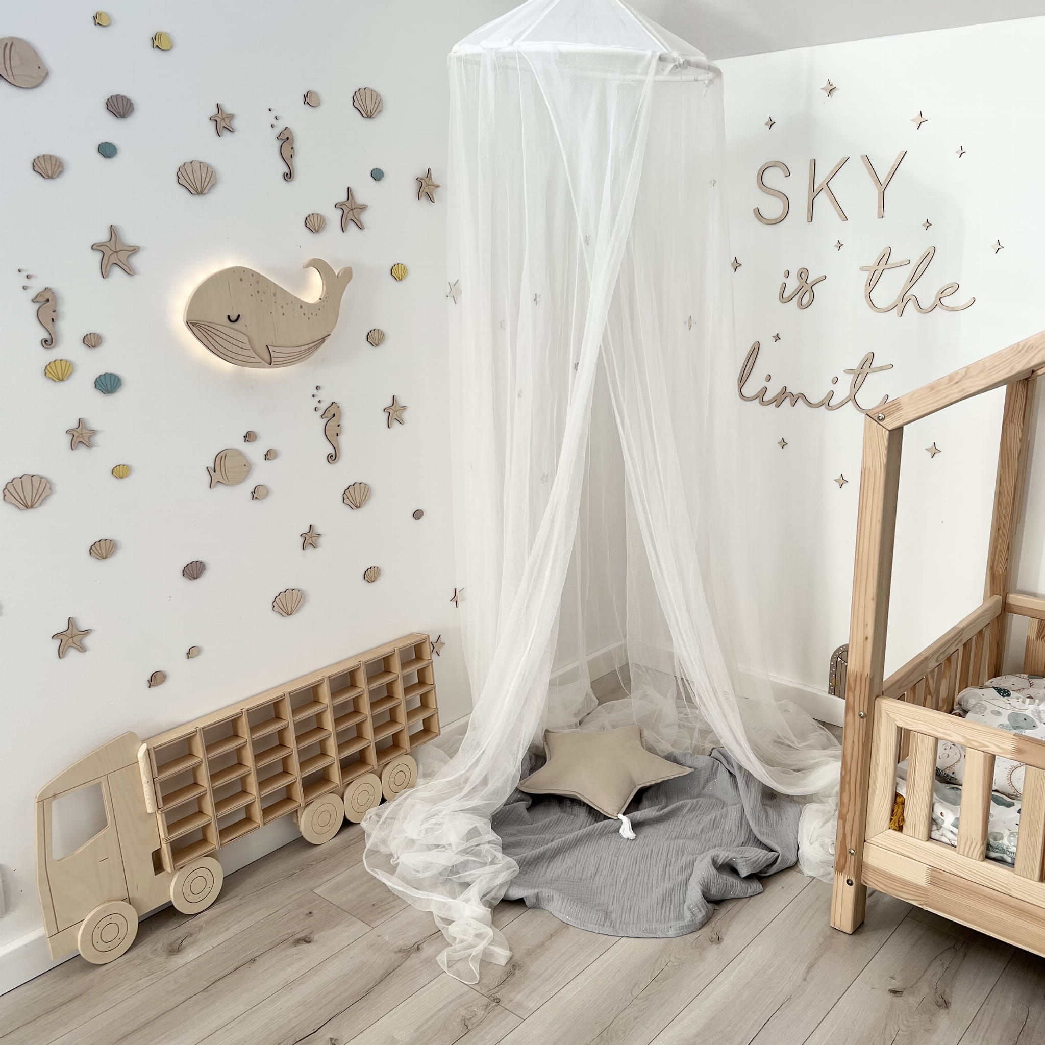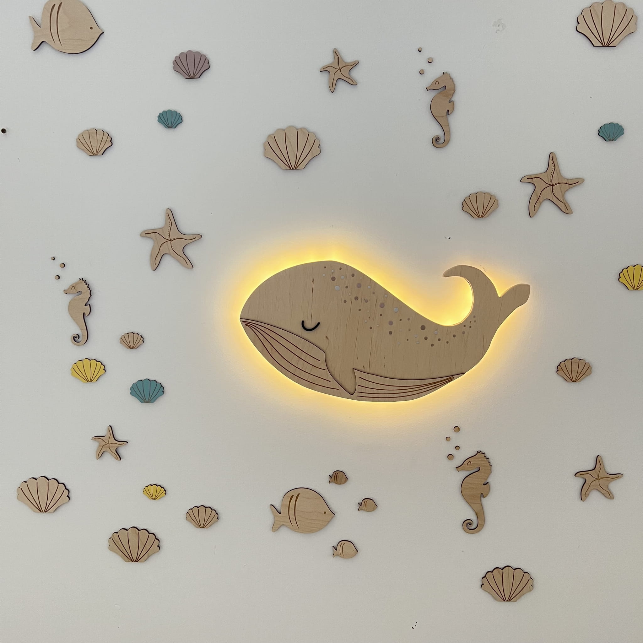 Pasinerkite į vaizduotės ir ramybės pasaulį su šiuo rankomis tapytu banginio formos naktiniu šviestuvu. Kiekvienas taškelis – tai žmogaus prisilietimas, kiekviena detalė – maža jūros paslaptis. Šviestuvas ne tik šviečia, bet ir kuria jaukų, svajingą jaukumo kampelį jūsų mažylio kambaryje.