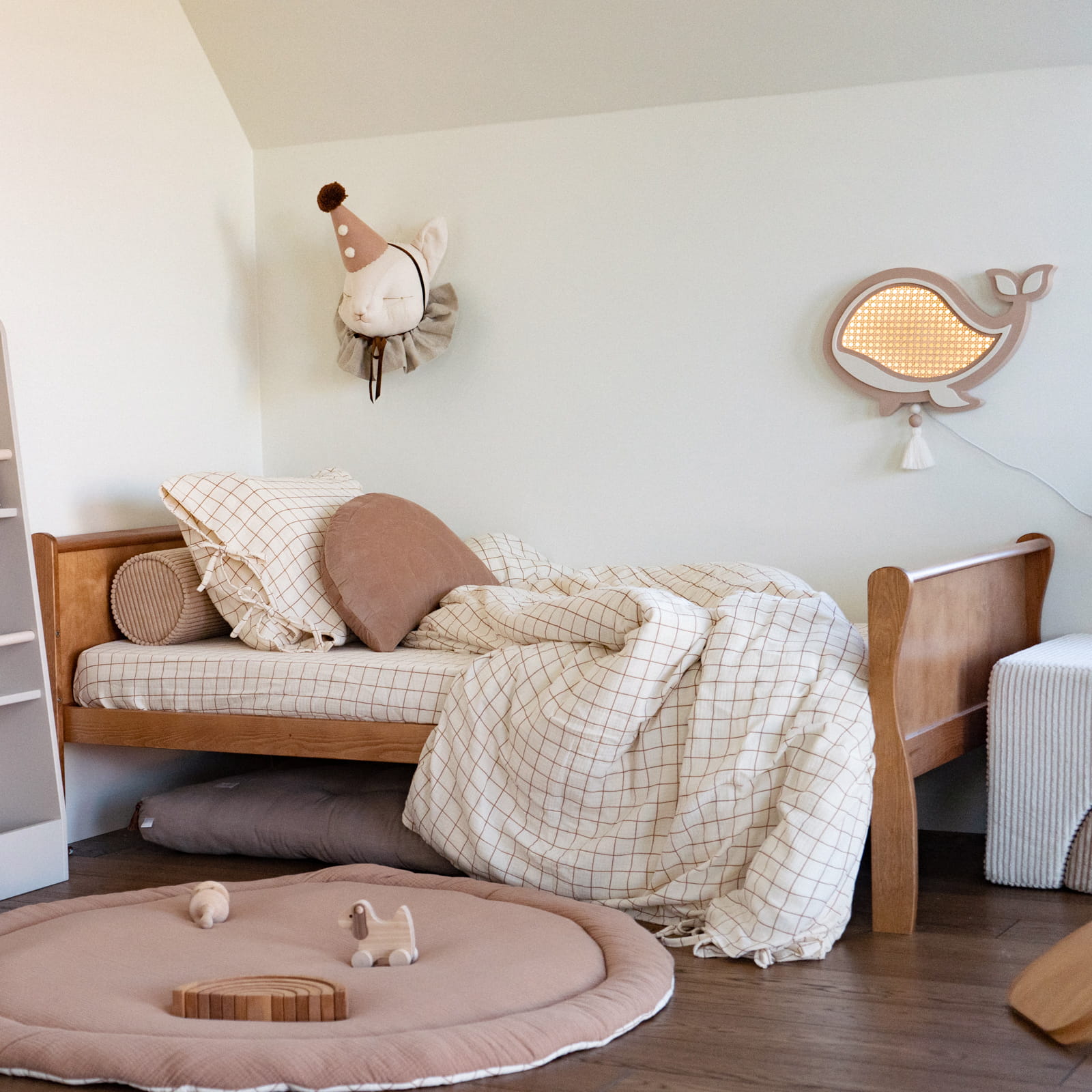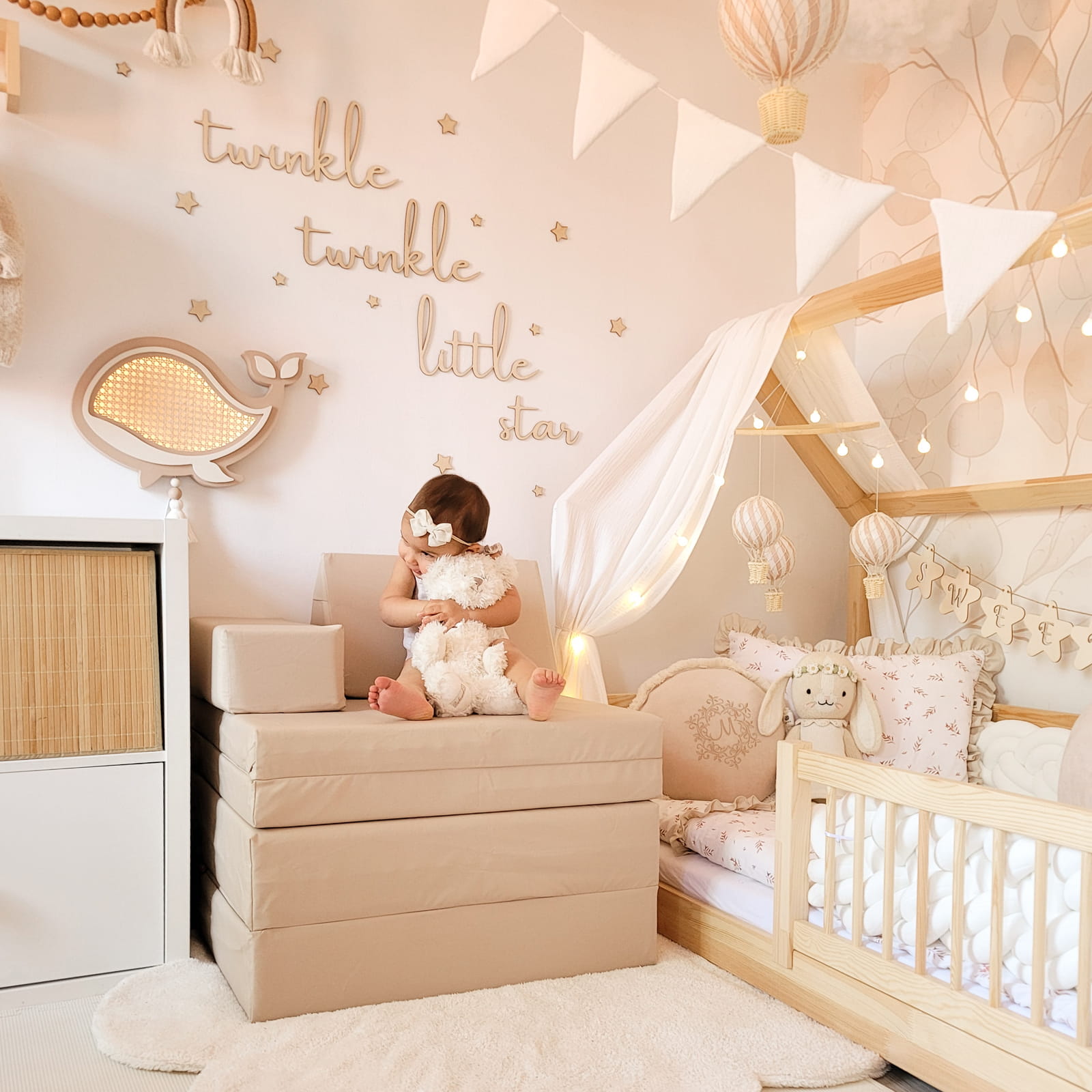 Ši švelnios šviesos lempa ne tik puošia kambario sieną, bet ir tampa saugiu palydovu prieš miegą. Ji sukurta jaukią atmosferą, mažųjų emocinį saugumą ir tėvų ramybę.