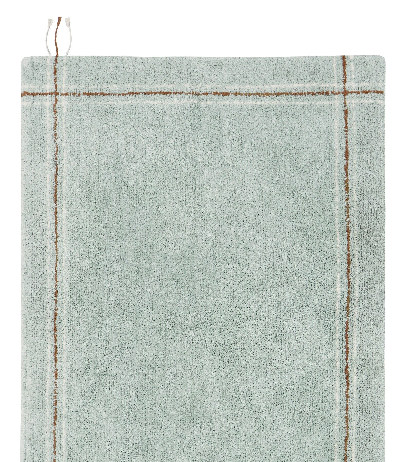 Rankų darbo kilimas, įkvėptas tradicinių virtuvinių rankšluosčių raštų, spinduliuoja švelnią vintažinę nuotaiką. Pagamintas iš „RugCycled®“ kolekcijos drobės mišinio – natūralios ir minkštos medvilnės su išskirtinėmis mėlynos ir karamelės spalvų dekoratyvinėmis juostelėmis bei supintais kraštais.