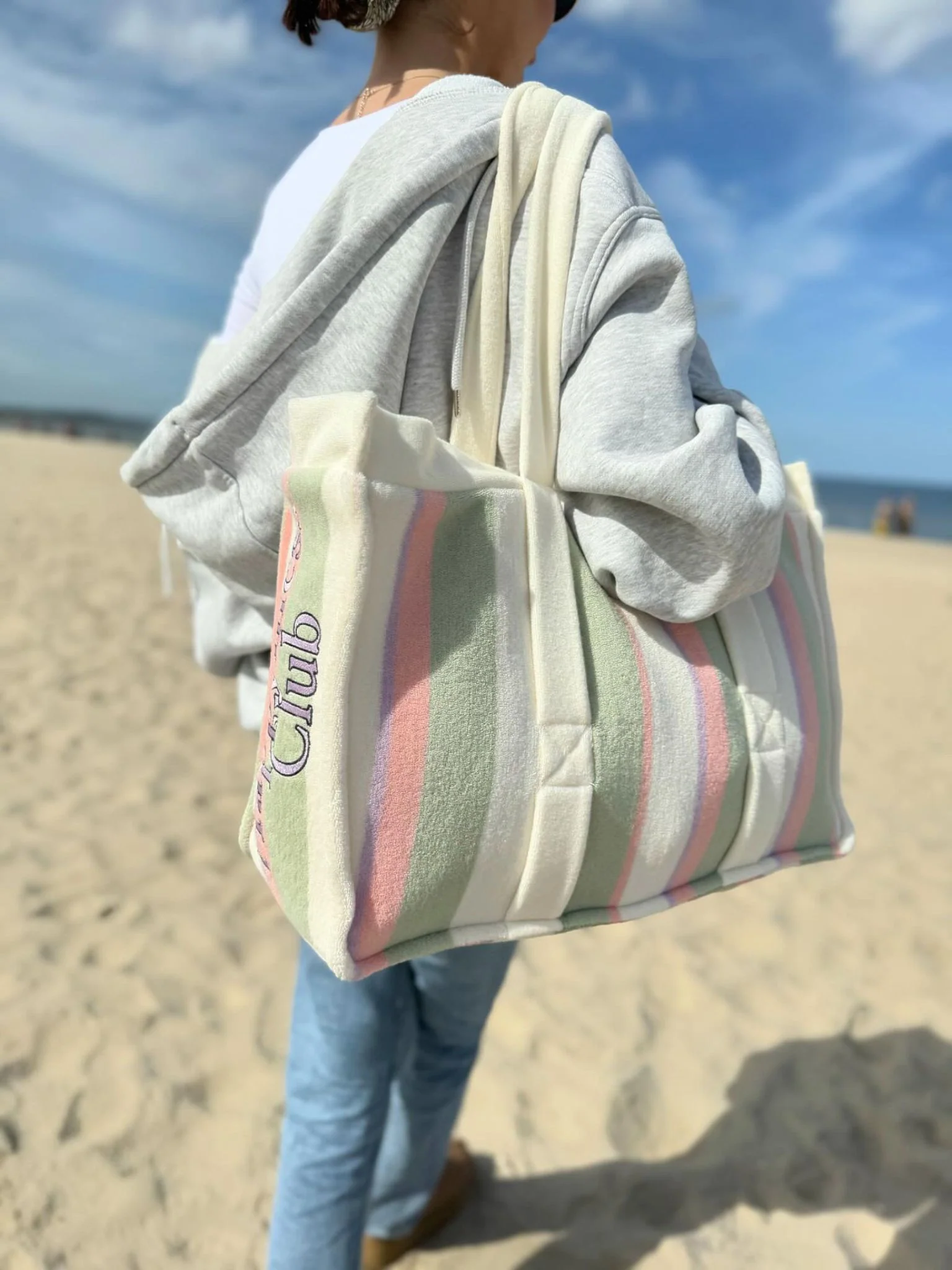 Šis stangrus ir talpus krepšys iš švelnaus veliūro medvilnės – puikus pasirinkimas tiek kasdienai, tiek išvykoms. Jis pasiūtas iš GOTS sertifikuotos ekologiškos medvilnės, turi originalų siuvinėjimą šone, vidinę kišenę su užtrauktuku ir išorines kilpeles – patogu ir stilinga.
