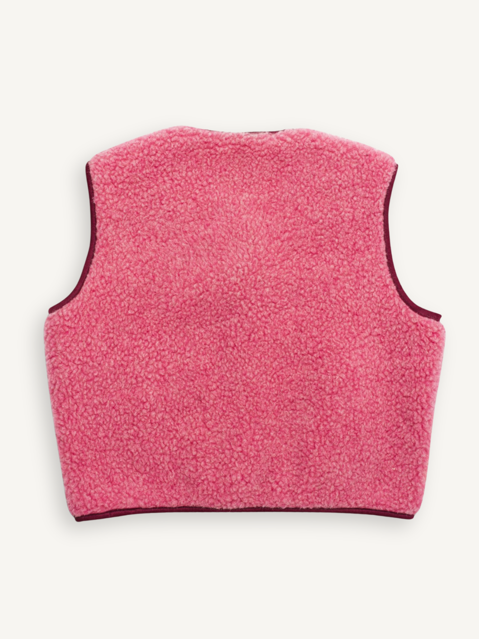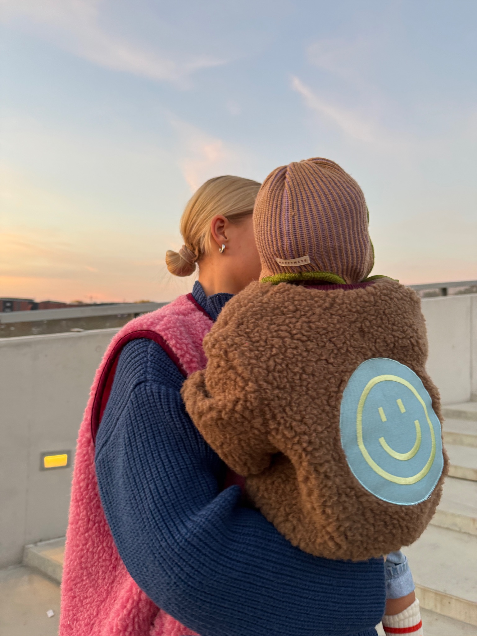 Oversize kirpimas suteikia komforto ir laisvės jausmą. Liemenė turi dvi vidines priekines kišenes, užsegama spaudėmis. Priekyje – žaisminga aplikacija su šuniuko motyvu, papildanti naujausią Happymess Winter Club kolekciją. Naujose kolekcijos partijose – pleistras su „Happymess“ logotipu.