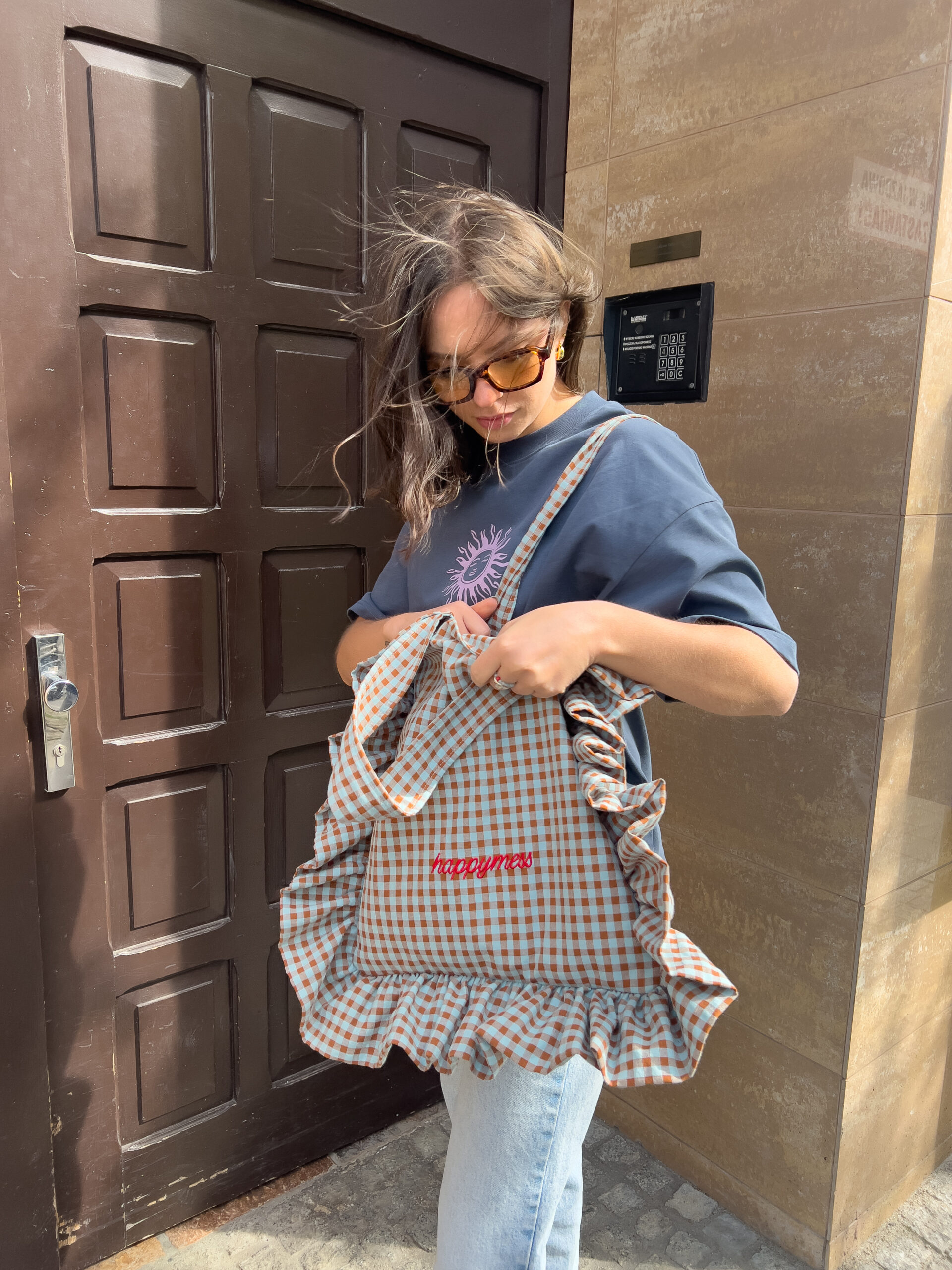 Elegantiškas ir funkcionalus krepšys, puikiai tinkantis kasdienai ar darbui. Struktūrizuotas dizainas su švelniais raukiniais, siuvinėta priekine dalimi ir dviem talpiais skyriais. Viduje – mažesnė kišenėlė smulkmenoms. Itin patogus – telpa ir nešiojamas kompiuteris.