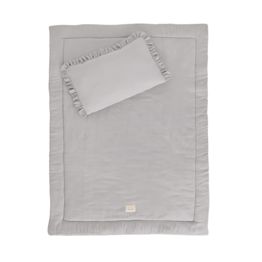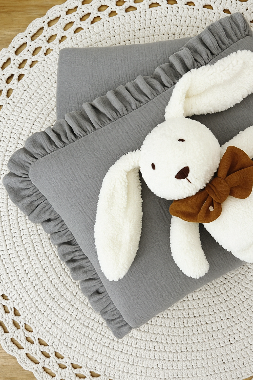 Muslino patalynės komplektas su raukiniais ir užpildu – pilka