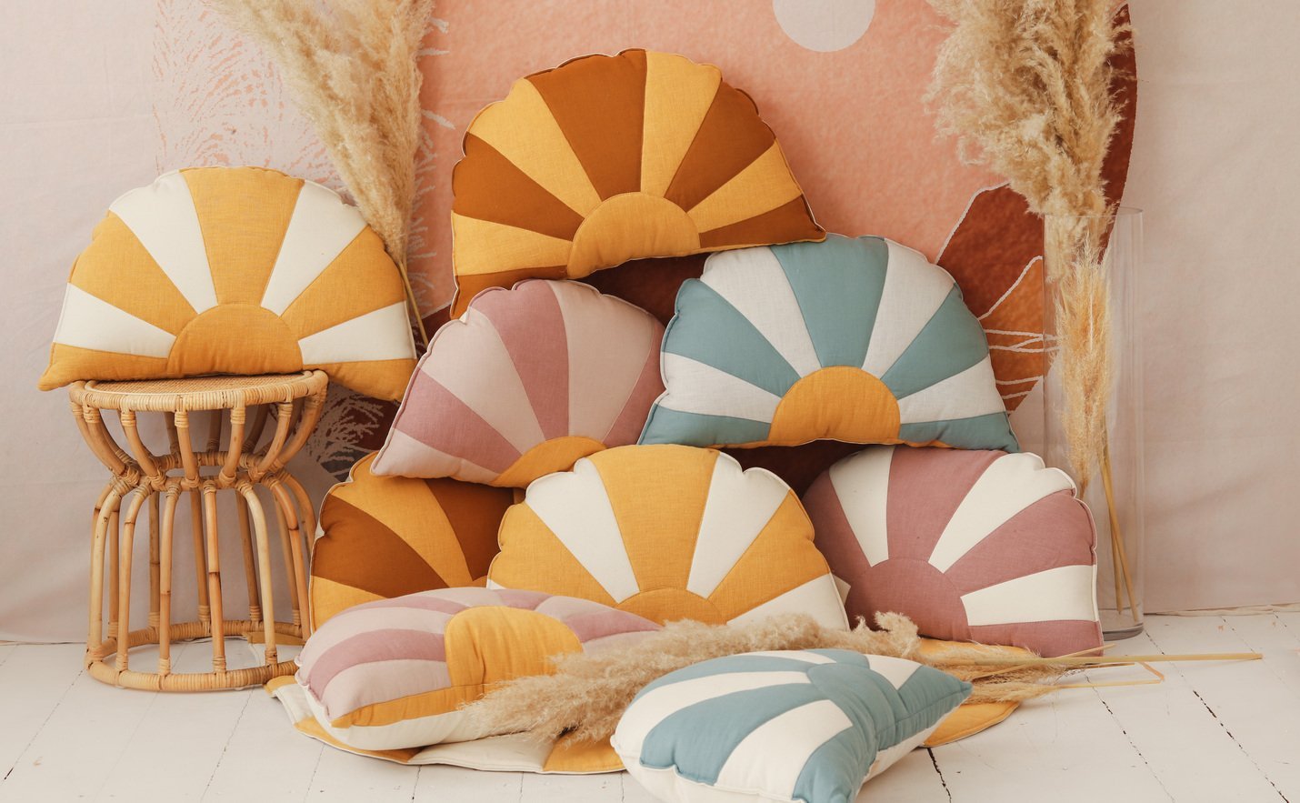 👉 Derinkite pagalvėles tarpusavyje ir kurkite savo unikalią vasarišką kompoziciją!