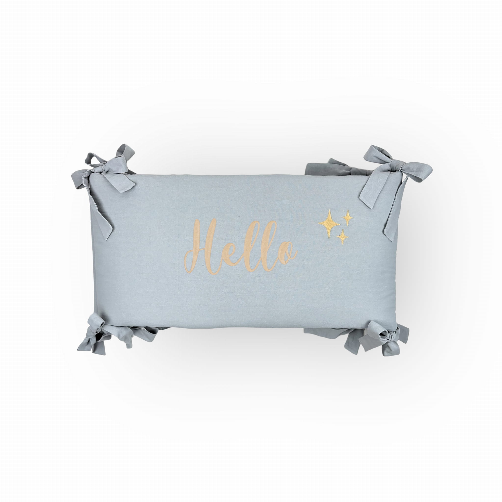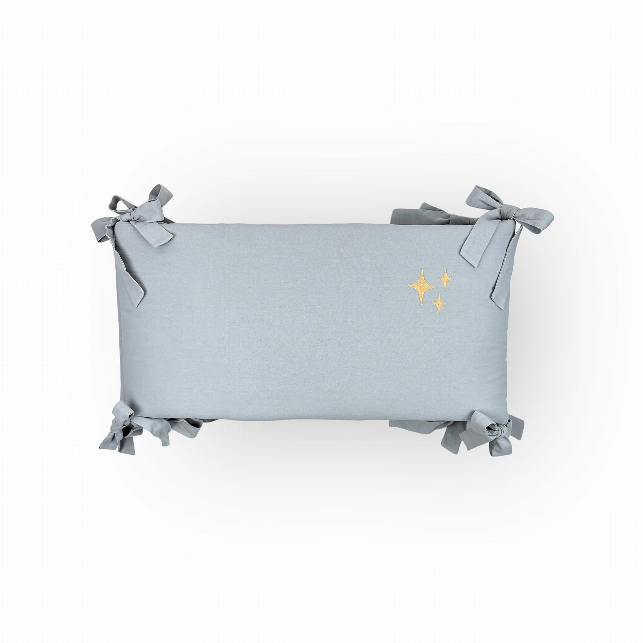 Viduje slepiasi minkštas, antialerginis silikoninis užpildas. Dygsniuota per lenkimo vietas, su dekoratyvinėmis kaspinėlio formos virvelėmis. Vidurinę dalį puošia subtilus siuvinėtas žvaigždžių motyvas – taip pat galima suasmeninti vardu ar žinute.