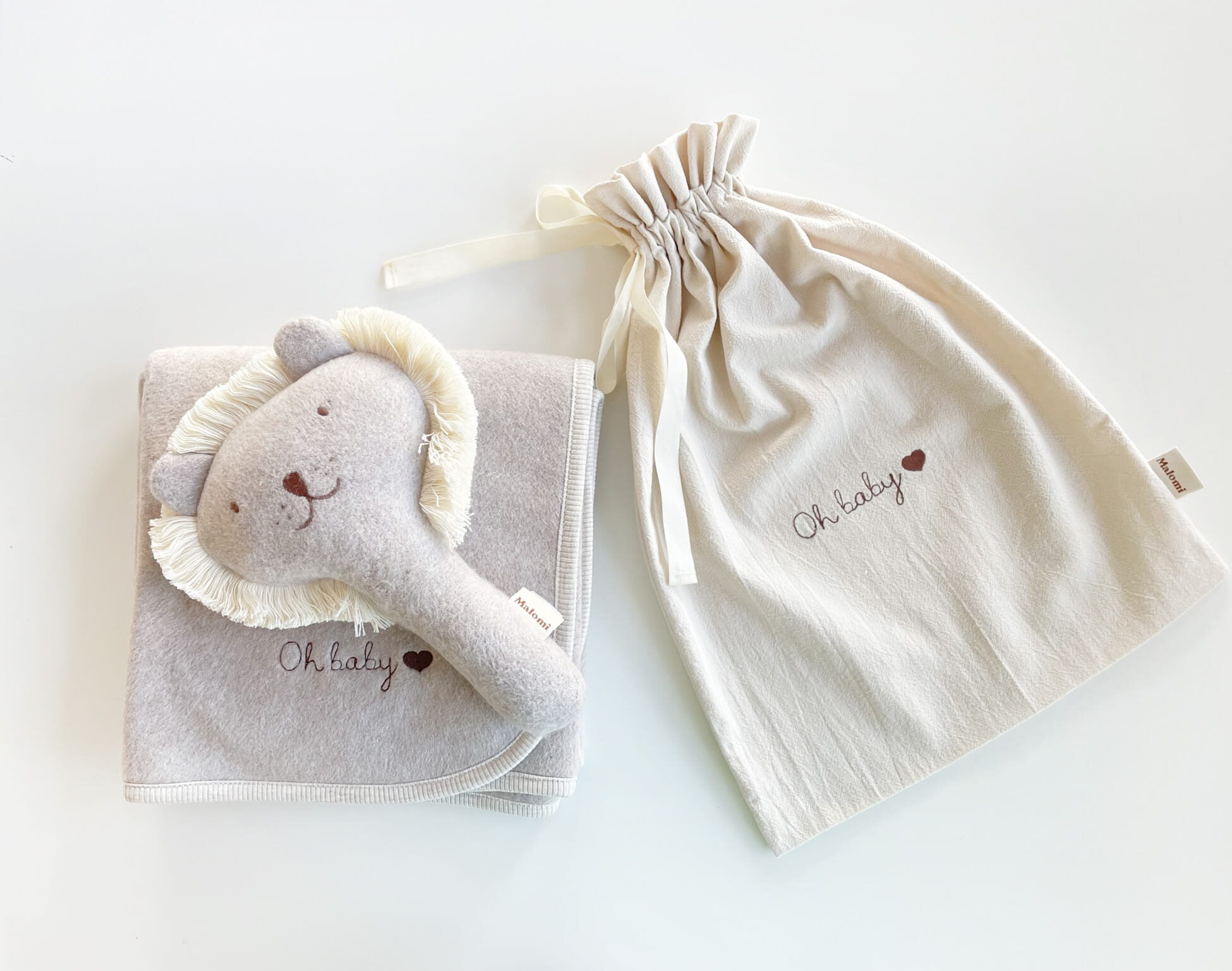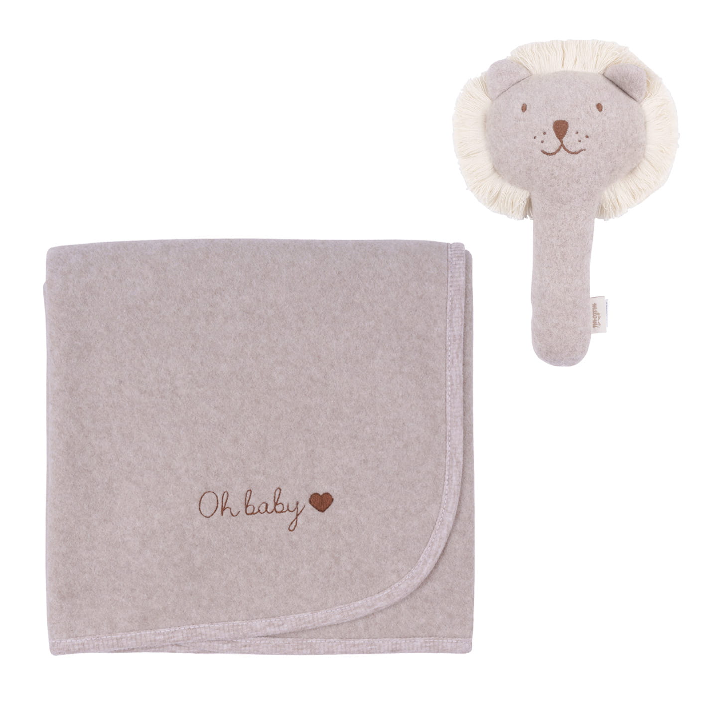 Medvilniniame maišelyje slepiasi šiltutėlė 75×90 cm antklodėlė iš ekologiškos flisinės medvilnės bei liūto formos barškutis – jaukus, lengvas, tobulas mažoms rankytėms. Barškučio garsas švelnus ir ramus, o siuvinėtas maišelis ir antklodė gali būti suasmeninti – puiki dovana kūdikio sutiktuvėms ar pirmosioms dienoms namuose.