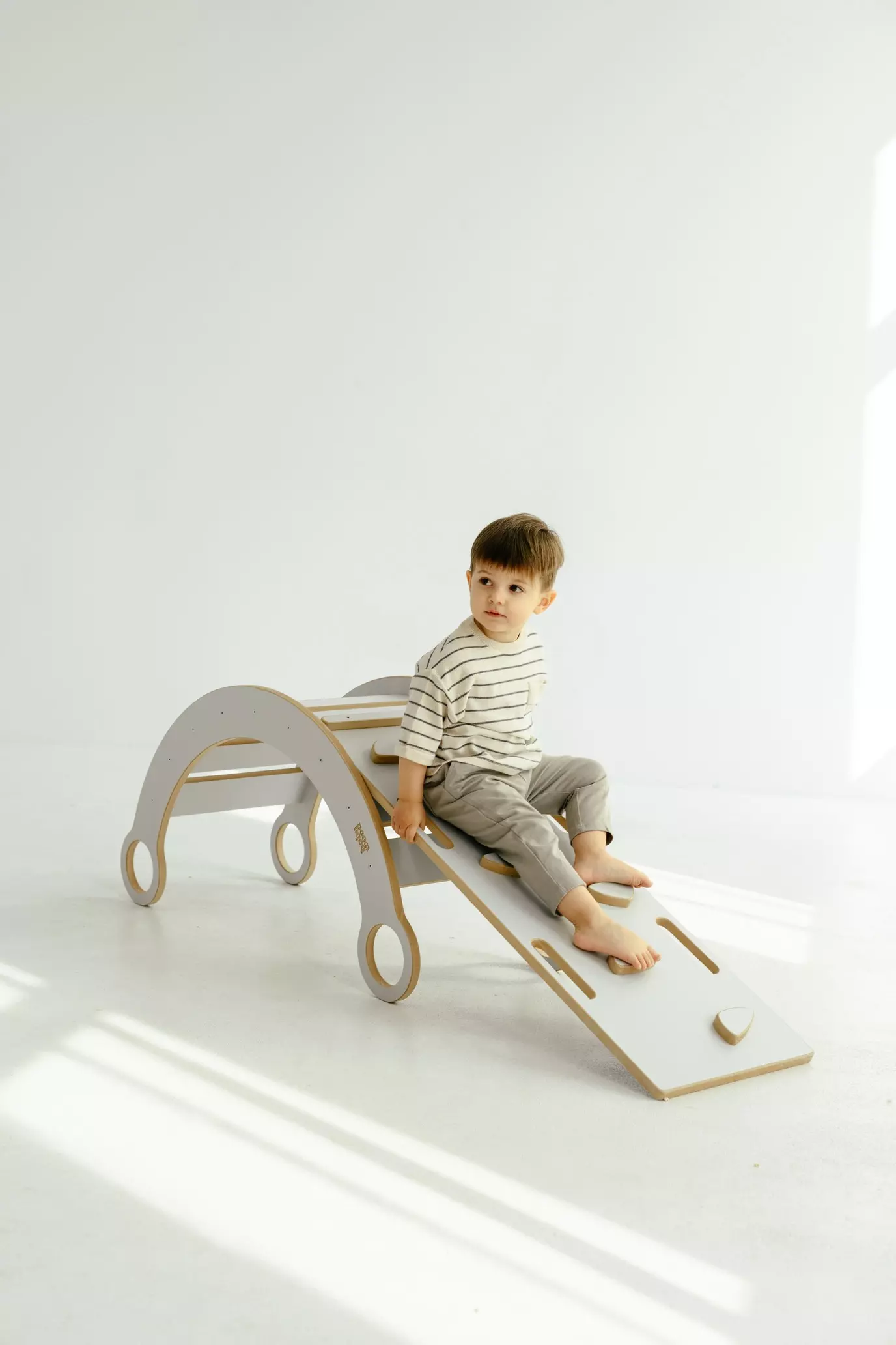 Šis priedas suderinamas ne tik su BabyWood mediniu supamuoju rokeriu, bet ir su laipiojimo trikampiu, Pikler kopėtėlėmis ar gali būti naudojamas atskirai – žinoma, prižiūrint tėvams.