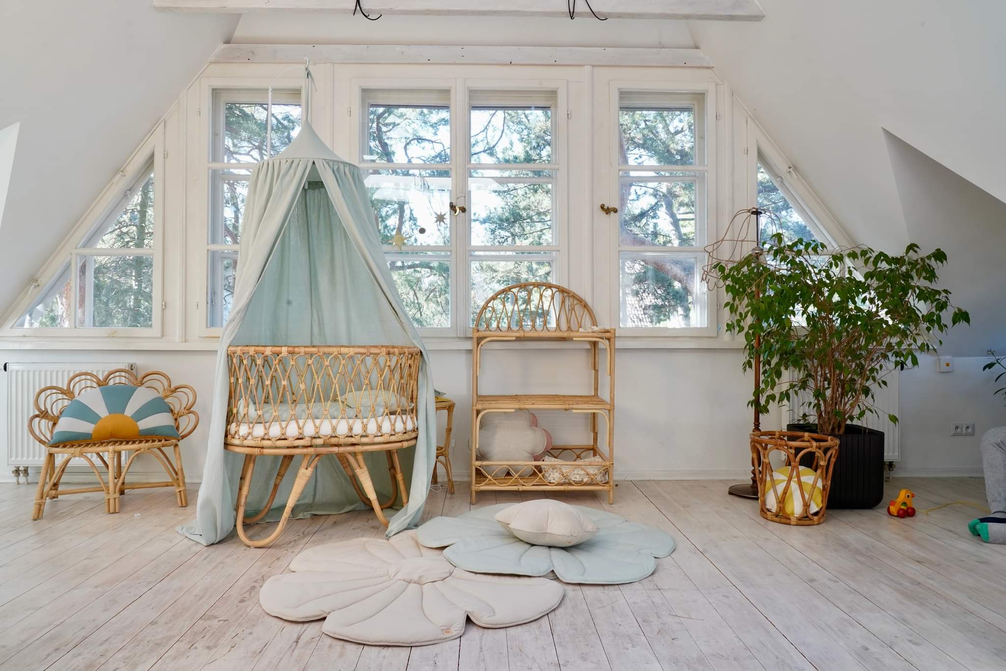 „Bloom“ kilimėlis – tai jaukus ir minkštas pagrindas vaikų kambaryje, puikiai derantis prie palapinės, baldakimo ar kaip sienų dekoracija. Jis taip pat gali būti naudojamas žaidimams sode ar piknike nuo pat mažų dienų.