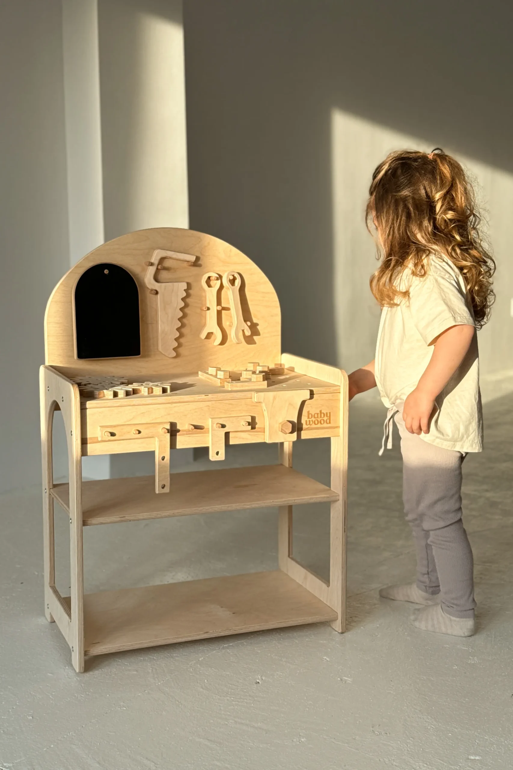 Medinė vaikų dirbtuvėlė – tai daugiau nei žaislas. Tai kūrybos, mokymosi ir džiaugsmo erdvė jūsų mažyliui. 🌿