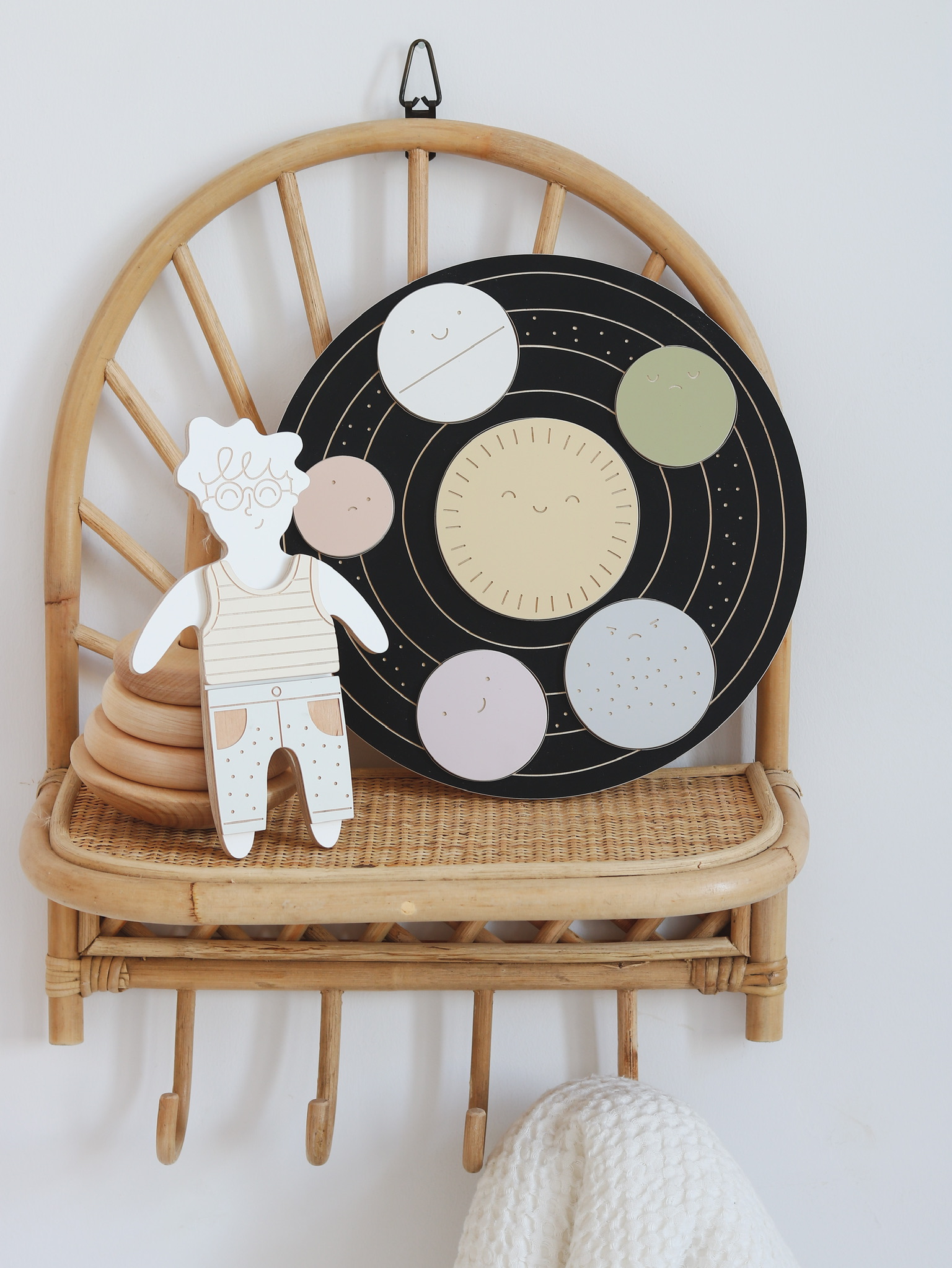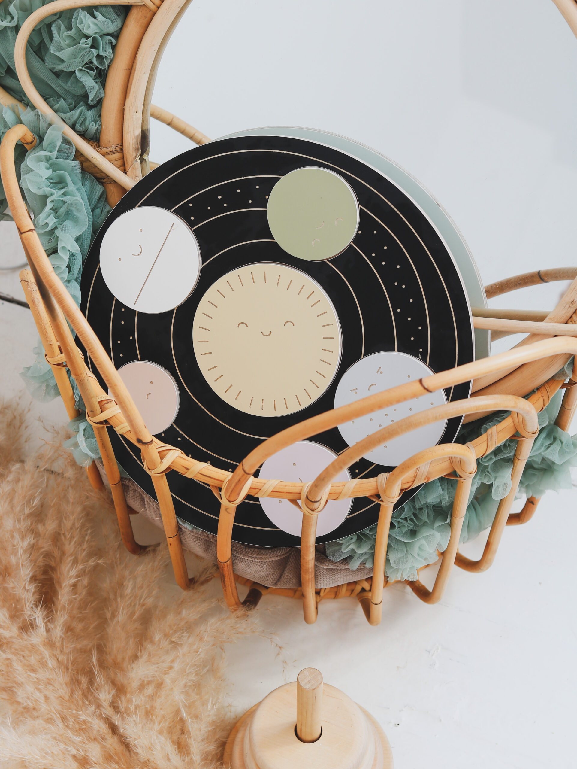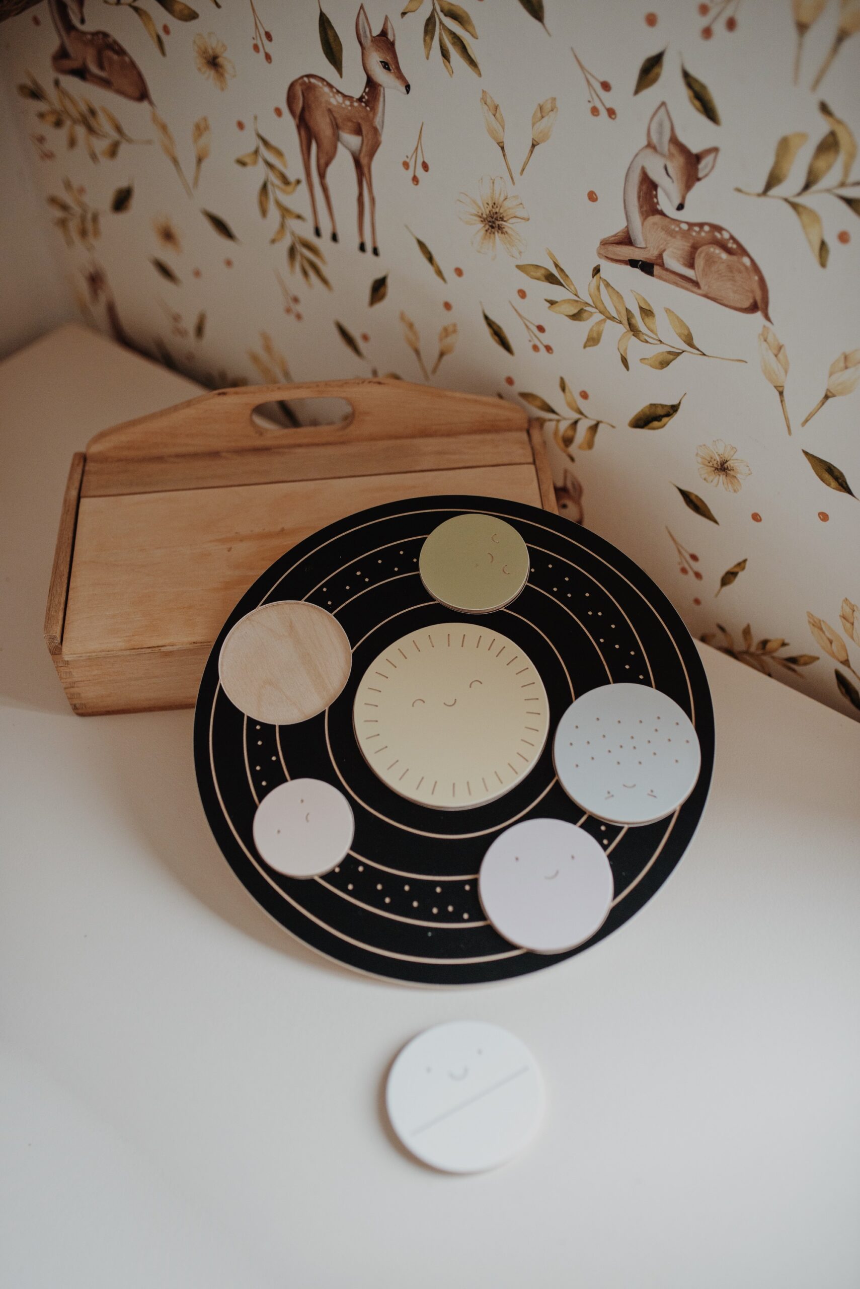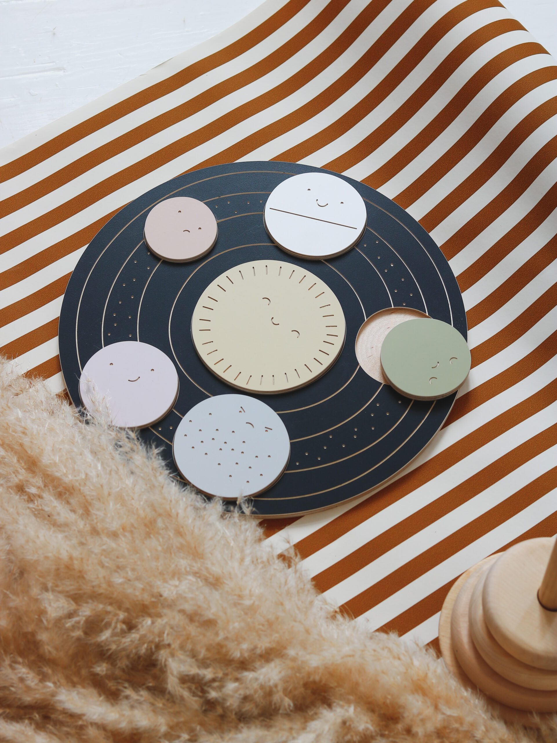 Šis švelnaus dizaino medinis žaislas padeda mažyliams pažinti emocijas per žaidimą. Apskritime išpjautos ertmės, į kurias vaikas turi įstatyti 6 skirtingas planetas. Kiekviena planeta – vis kitos spalvos ir su skirtinga veido išraiška. Tai ne tik lavina loginį mąstymą bei akių-rankų koordinaciją, bet ir padeda lengvai, jaukiai pradėti pokalbius apie emocijas.