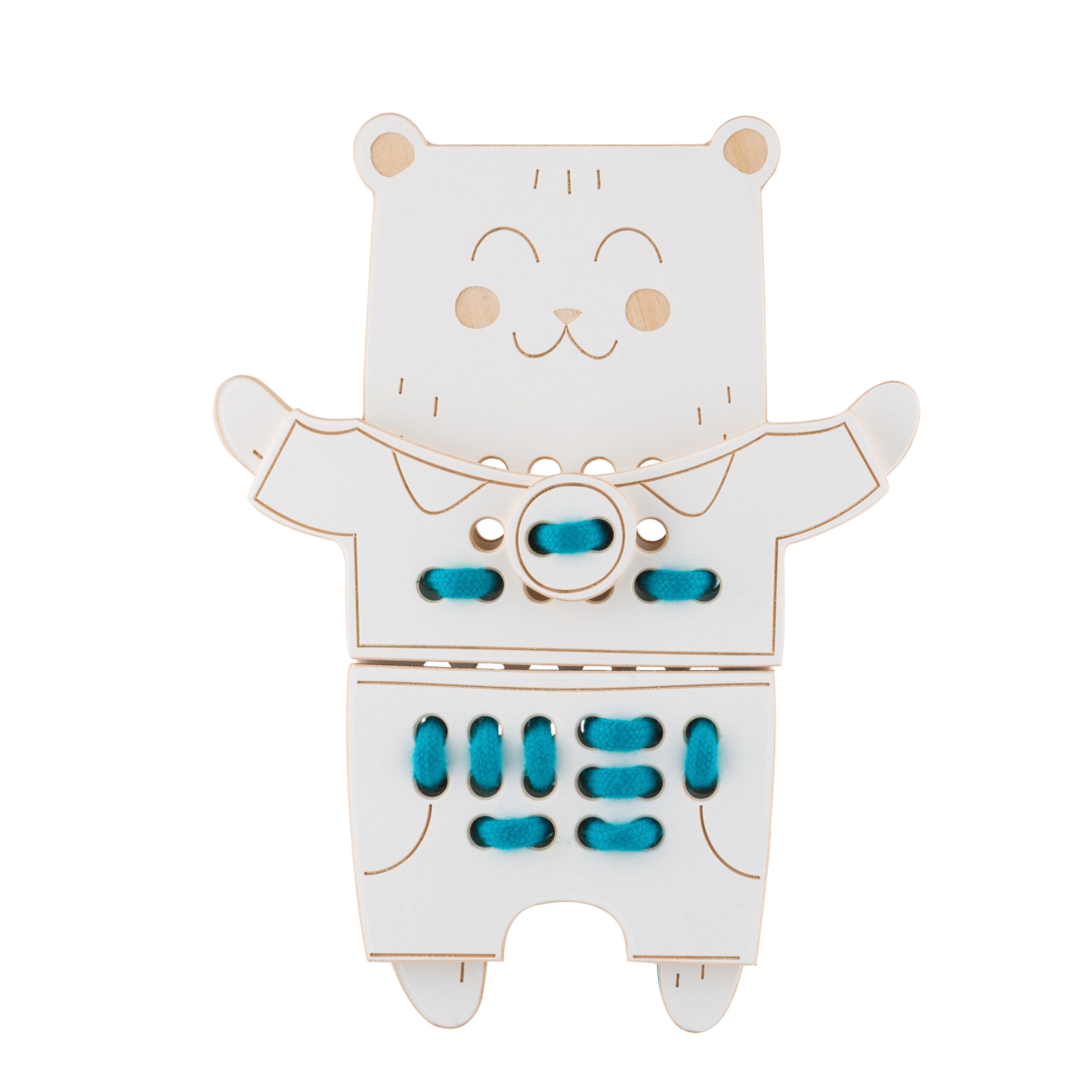 Medinis vėrimo žaislas „Mr Teddy Bear“ – tai Montessori įkvėpta priemonė, kuri lavina smulkiąją motoriką, vaizduotę ir kūrybiškumą. Vaikai smagiai leis laiką verdami raištelį per drabužėlius, mokysis spalvų bei pažins gyvūnų pasaulį.
