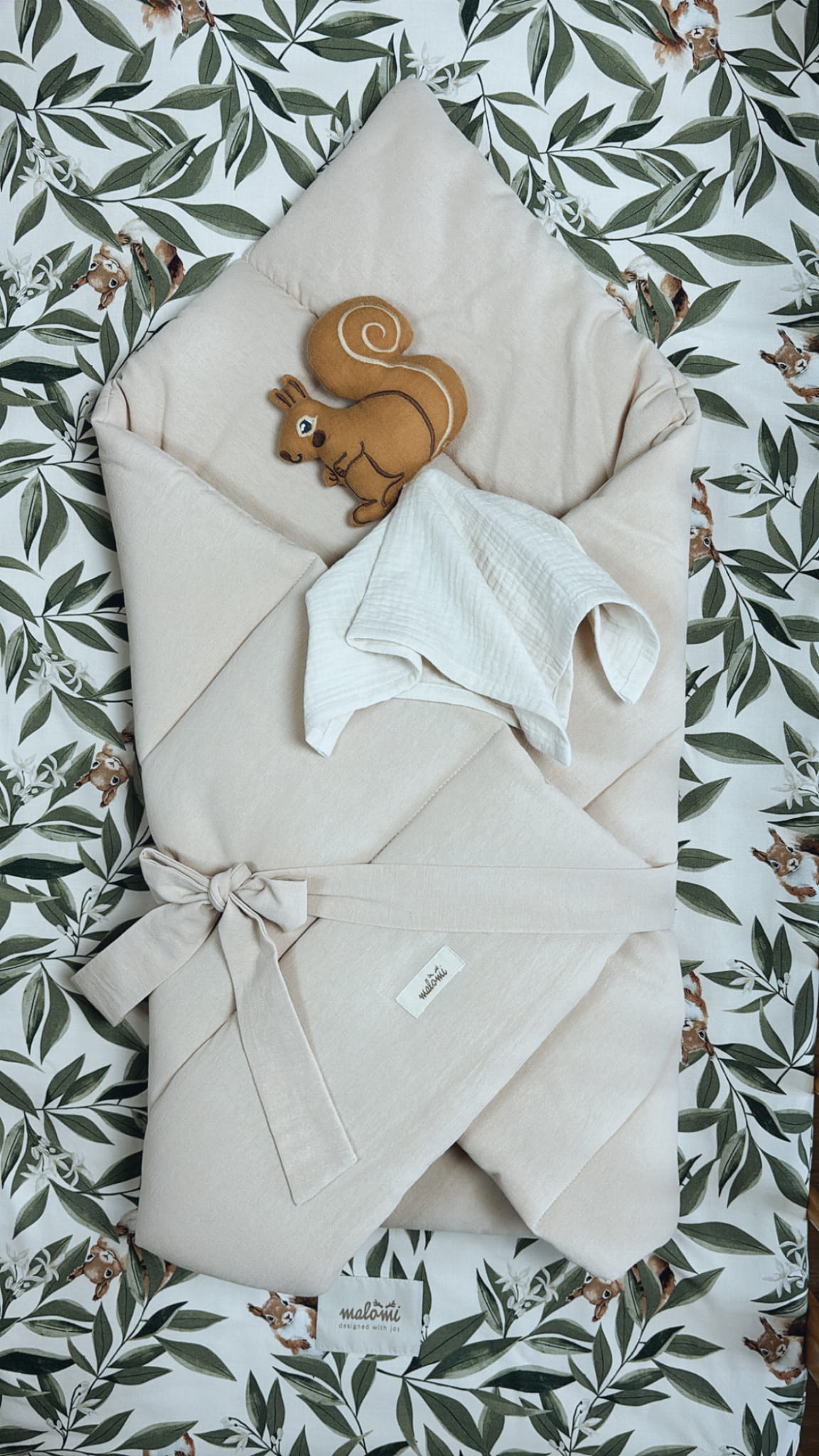 Žavinga muslininė voveraitė – tai daugiau nei žaislas. Tai pirmasis mažylio draugas, kuris lydi nuo pirmųjų prisilietimų iki švelniausių sapnų. Ši barškutė pagaminta iš 100 % natūralaus medvilninio muslino, kuris yra itin švelnus, kvėpuojantis ir draugiškas net jautriai kūdikio odelei.