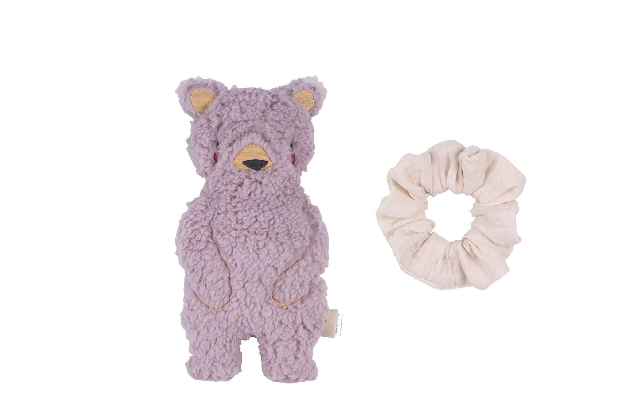 Pagamintas iš švelnaus audinio su dekoratyvine muslino kilpele – tinka mažoms rankytėms, lengva suimti.