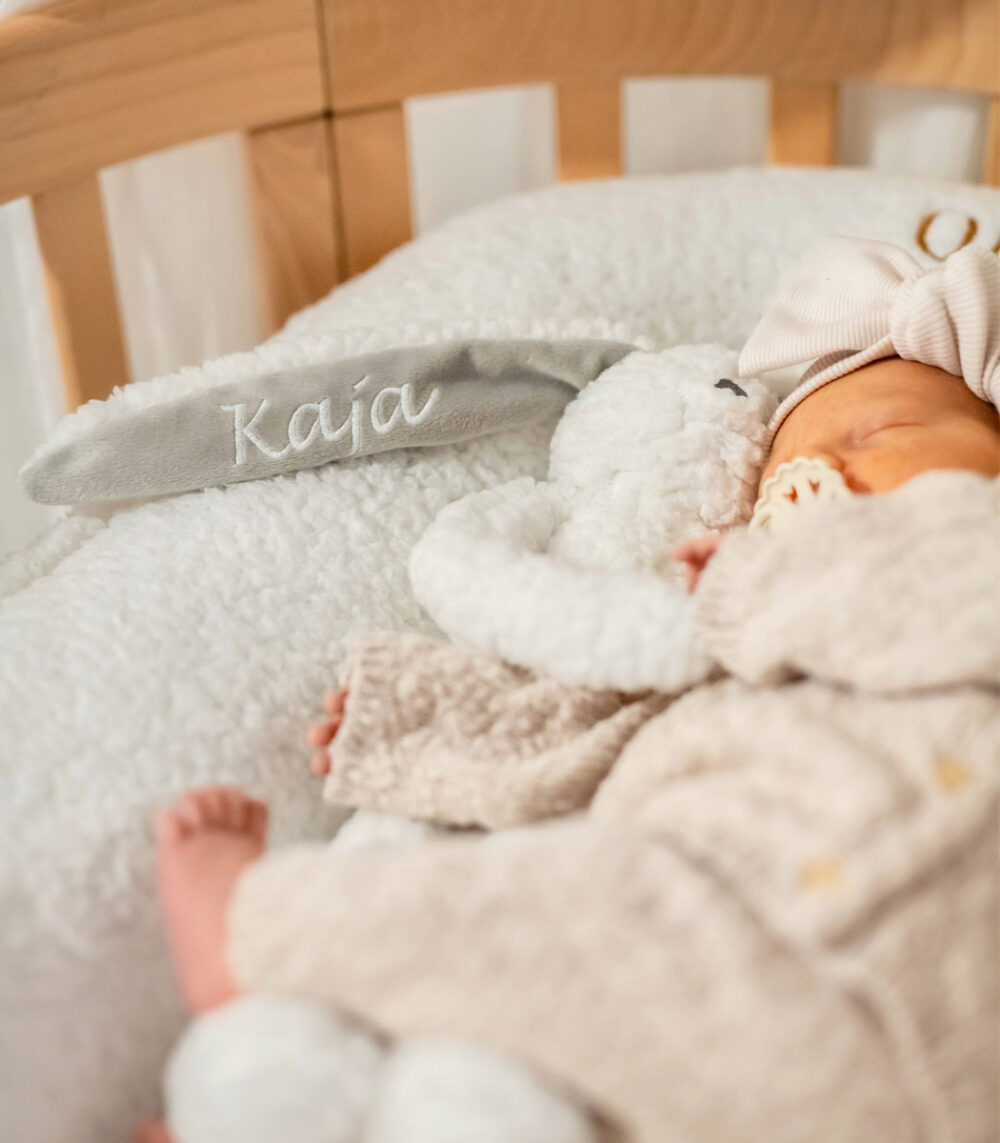 Minkštas, švelnus ir kupinas šilumos – šis zuikutis taps pirmuoju mažylio draugu ir jaukumo simboliu.