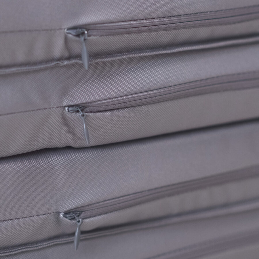 🌿 Komfortas ir estetika: viduje esanti minkšta puta izoliuoja nuo šaltesnio ar kietesnio paviršiaus – patogu naudoti ant žolės, smėlio ar medinės terasos. Raminanti pilka spalva puikiai dera su kitais lauko akcentais.