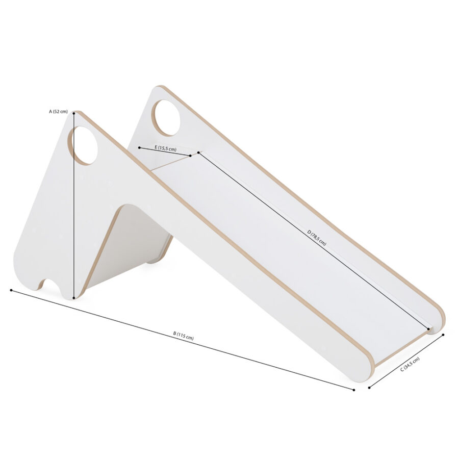 Ši čiuožykla pasižymi elegantišku, universaliu dizainu, todėl harmoningai įsilies į bet kurį vaikų kambario interjerą. Ji padeda lavinti motoriką, stiprinti raumenis ir ugdyti pusiausvyros pojūtį. Patogūs laipteliai su rankenėlėmis leidžia saugiai užlipti, o suapvalinti kraštai užtikrina komfortą žaidžiant.