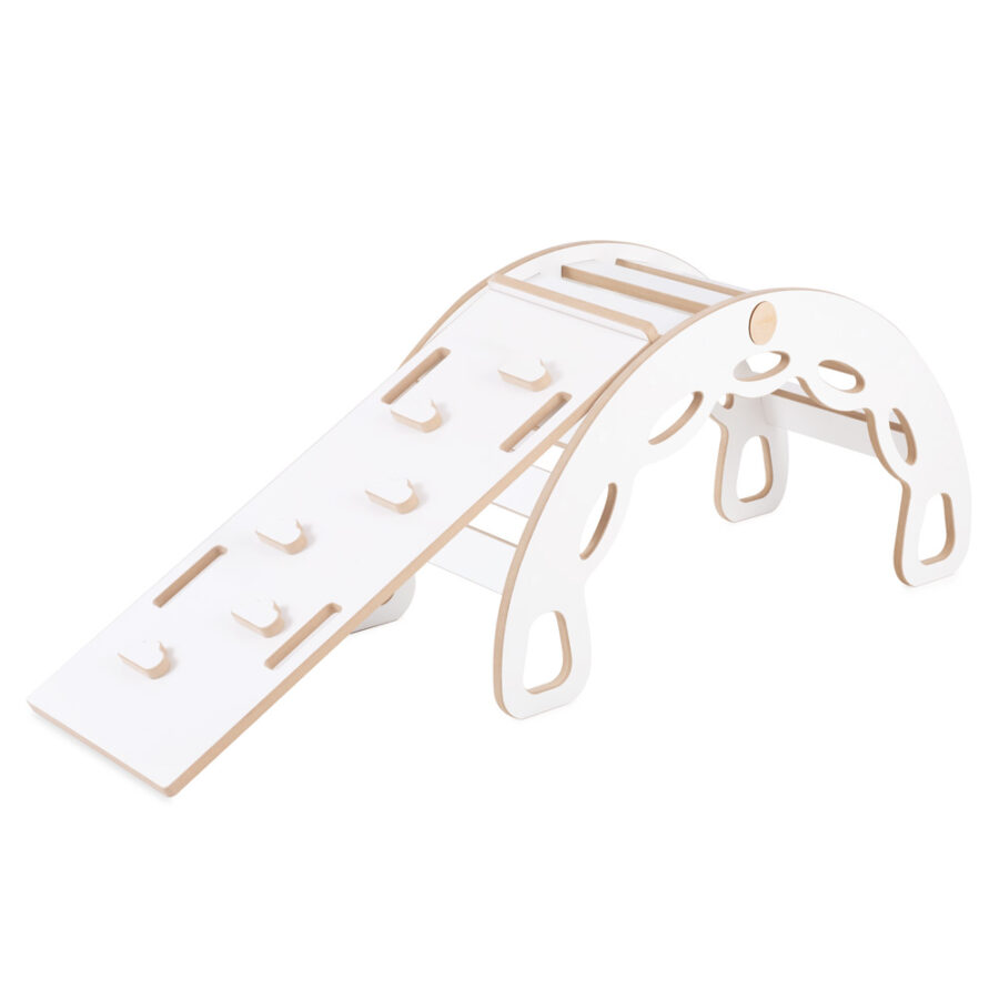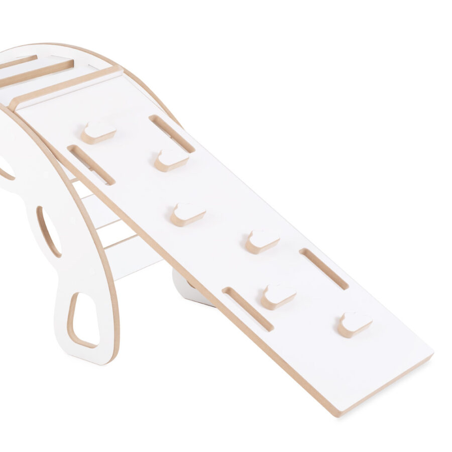 Dvipusis elementas – vienoje pusėje mažiesiems tyrinėtojams skirta laipiojimo siena, kitoje – smagi čiuožykla. Puikus būdas derinti aktyvią veiklą ir linksmybes vaikų kambaryje.